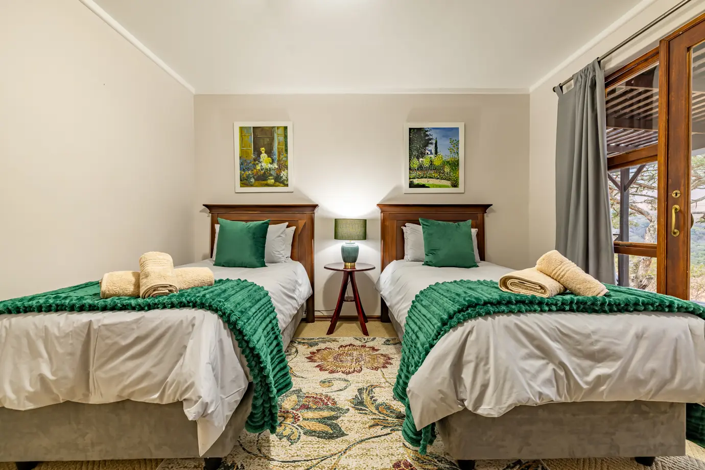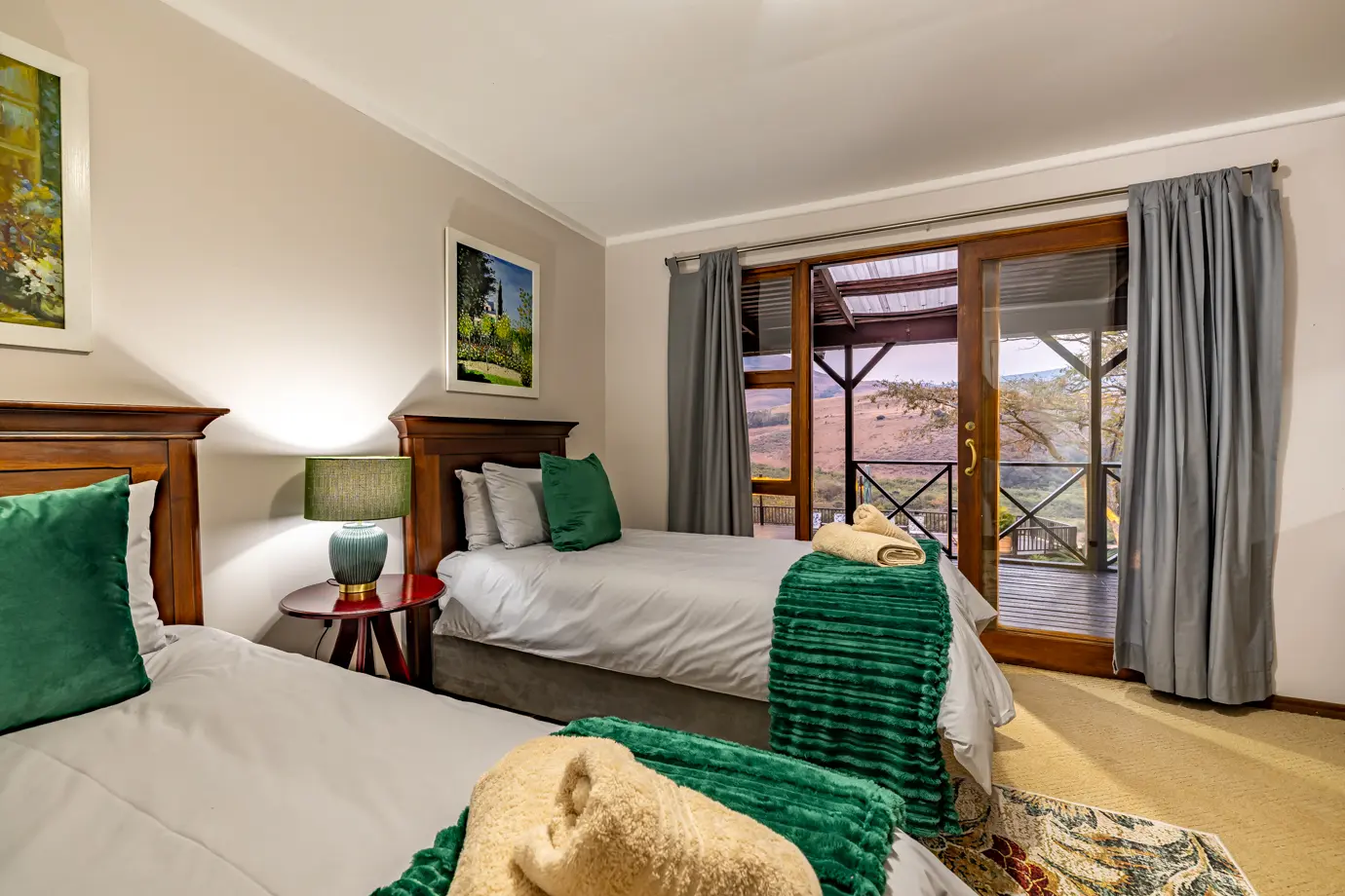 Leopard Tree House at Rosesands Mountain Lodge is perfect for families and groups, offering spacious living areas and panoramic mountain views from its patios and decks. This comfortable holiday home accommodates up to 10 guests, providing a relaxed base for exploring the surrounding natural beauty. Guests can relax in welcoming living areas and prepare meals in the fully equipped kitchen. Towels and essential toiletries are provided for your convenience, making it easy to settle in and enjoy your stay from the moment you arrive.