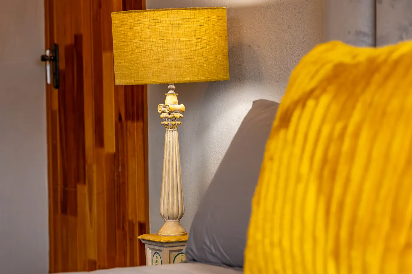 Wild Fig Cottage offers a private self-catering retreat ideal for couples looking for a quiet getaway in the mountains. The spacious bedroom features a king-size bed and a freestanding closed combustion fireplace, creating a warm and inviting atmosphere. Large windows provide sweeping views of the surrounding landscape.