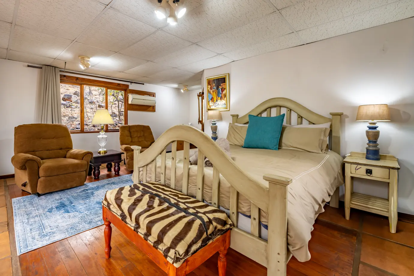 Leopard Tree House at Rosesands Mountain Lodge is perfect for families and groups, offering spacious living areas and panoramic mountain views from its patios and decks. This comfortable holiday home accommodates up to 10 guests, providing a relaxed base for exploring the surrounding natural beauty. Guests can relax in welcoming living areas and prepare meals in the fully equipped kitchen. Towels and essential toiletries are provided for your convenience, making it easy to settle in and enjoy your stay from the moment you arrive.