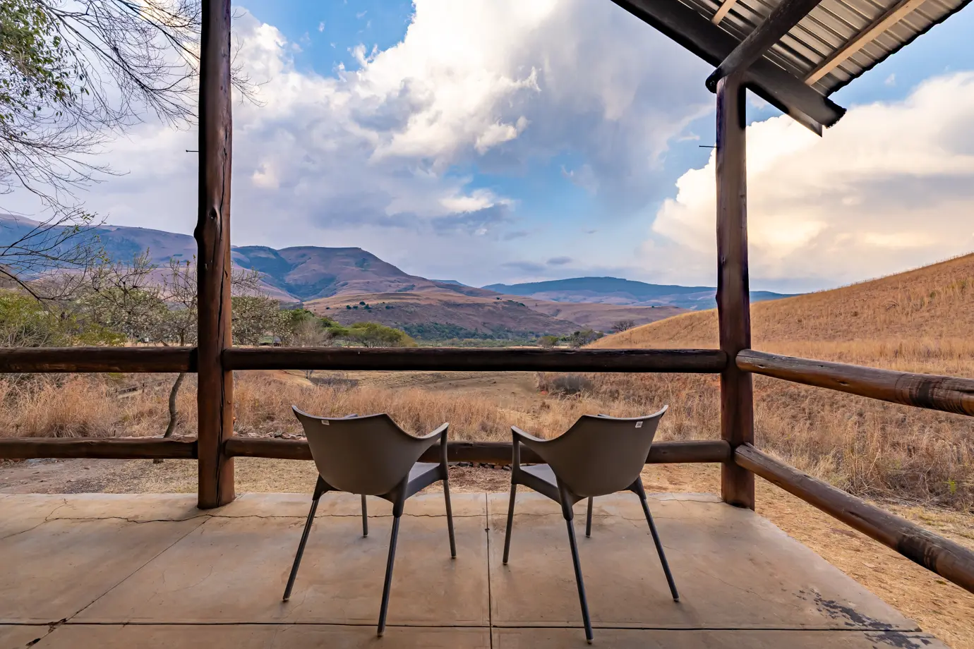 Wild Fig Cottage offers a private self-catering retreat ideal for couples looking for a quiet getaway in the mountains. The spacious bedroom features a king-size bed and a freestanding closed combustion fireplace, creating a warm and inviting atmosphere. Large windows provide sweeping views of the surrounding landscape.